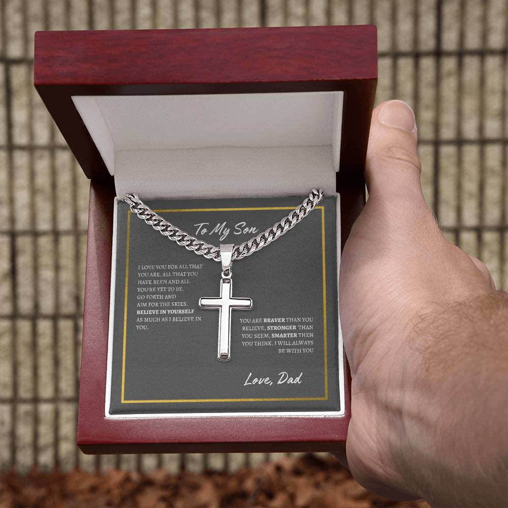 Cuban Chain with Artisan Cross Necklace | To Son From Dad